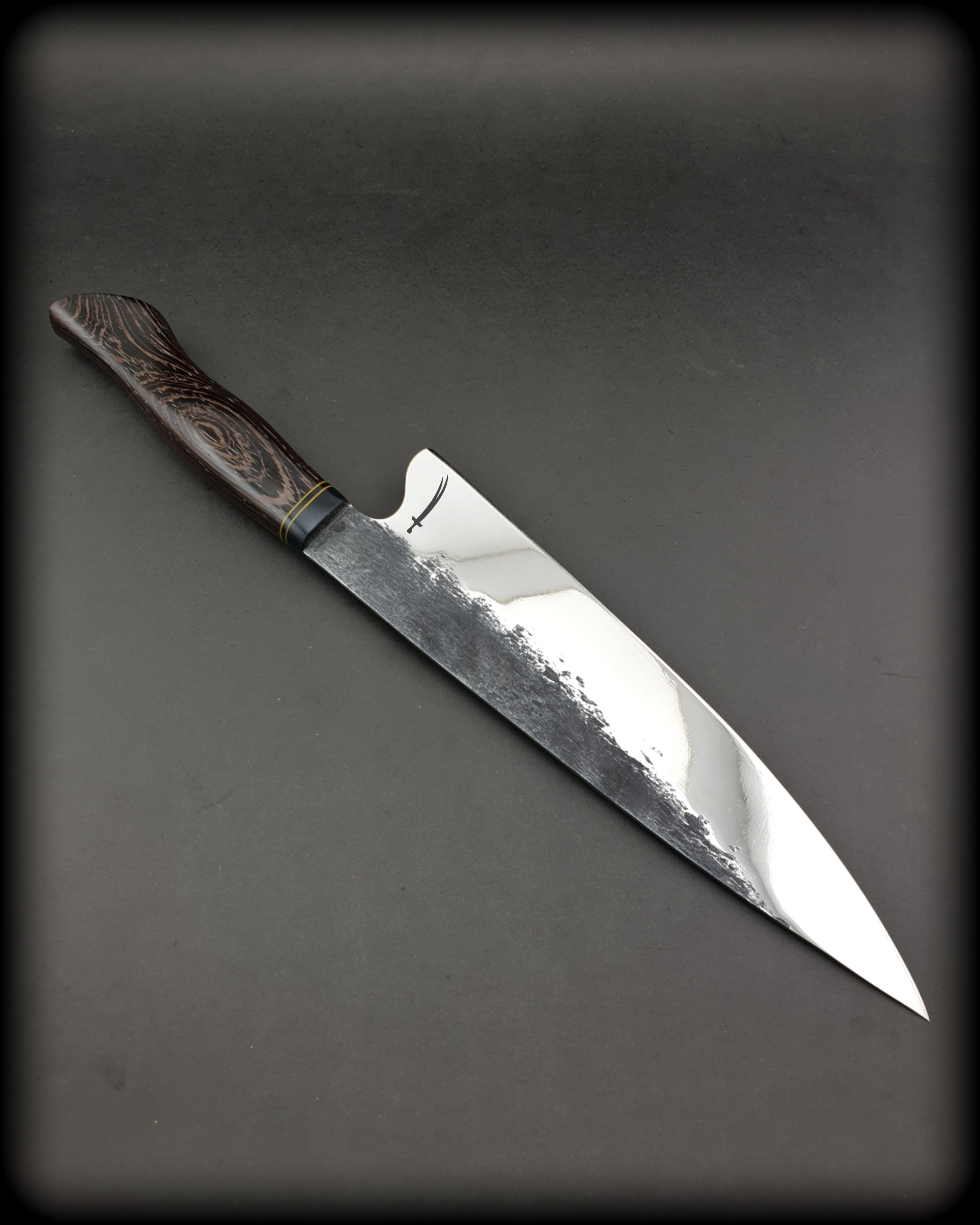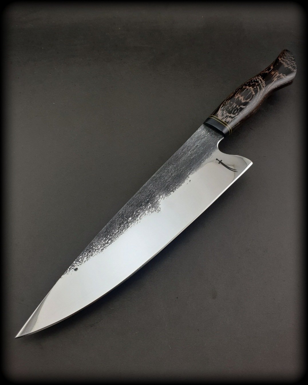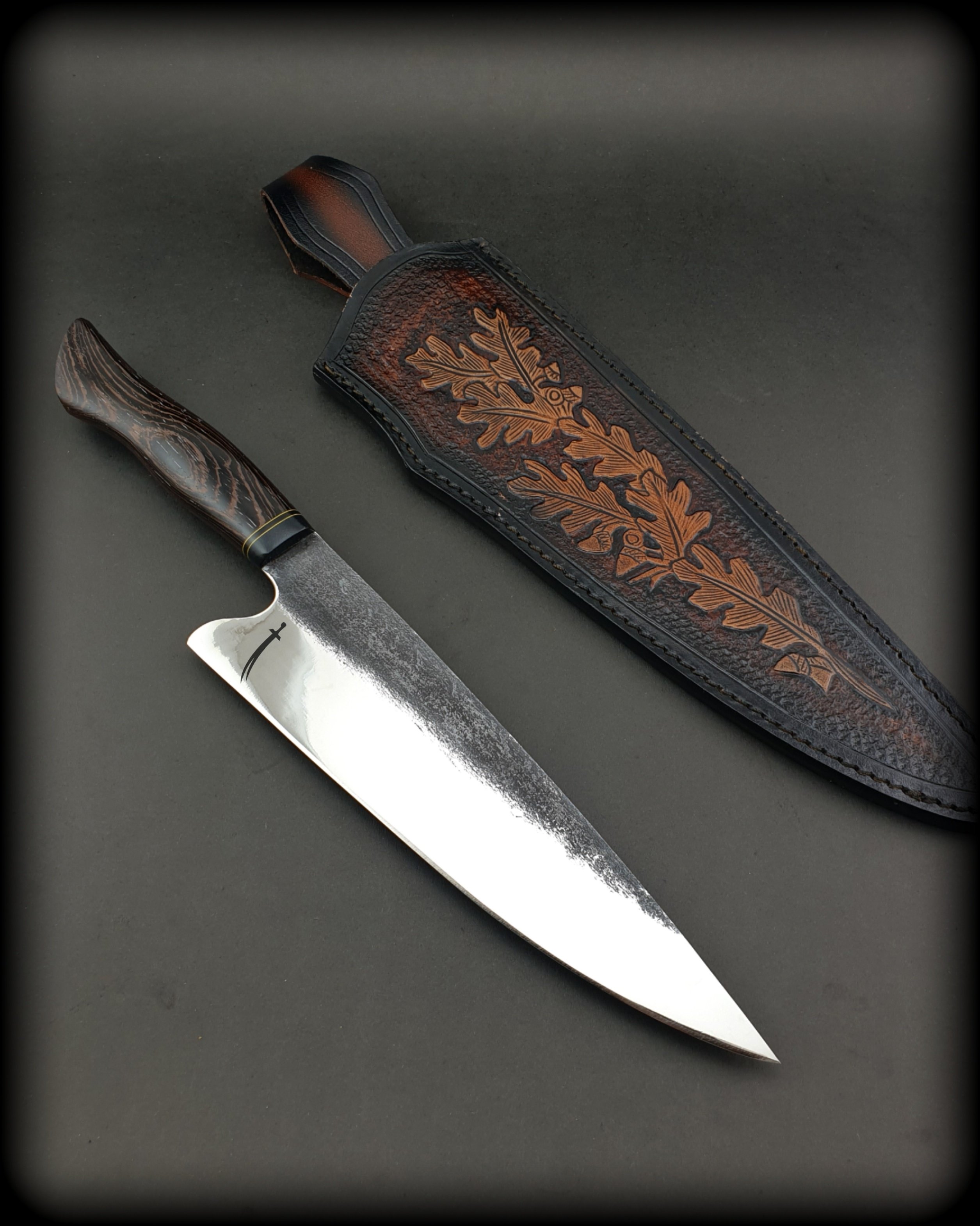 Masterfully elegant; perfectly balanced; razor sharp and with exceptional performance; this knife is a statement in refinement; beauty; purity and power. It can be used for your daily kitchen tasks of chopping; slicing; dicing and mincing of all kinds of meat; vegetables; fruits and bread. This chef knife has been the top choice of both home chefs and professionals alike.This kitchen knife features an ultra sharp Vacuum Heat Treated 440C Stainless Steel cutting core at 60 Rockwell hardness: extraordinary performance and edge retention. The cooking knife will maintain its functionality and sharpness for a long time. You will have no regret in testing the durability of this knife during tough and challenging tasks.Vetus Chef knives are designed to show the beauty of Western chef?s knives. While focusing on comfortability; and efficiency for the everyday chef. Blade length is 21cm and handle length is 15.5 cm with an overall length of 36.5cm.Handle is crafted from Wangy Wood; and is a great compliment to the beauty and comfort to the knife user. The stability of the handle allows the user full manipulation of the blade.