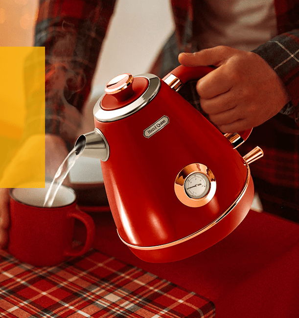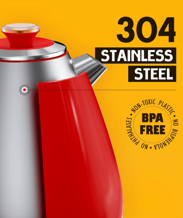 [All Stainless Steel] - -This retro electric kettle's interior, lid and filter are all made of food-grade 304 stainless steel. It has no plastic in contact with water and provides you and your family with healthy drinking without BPA.