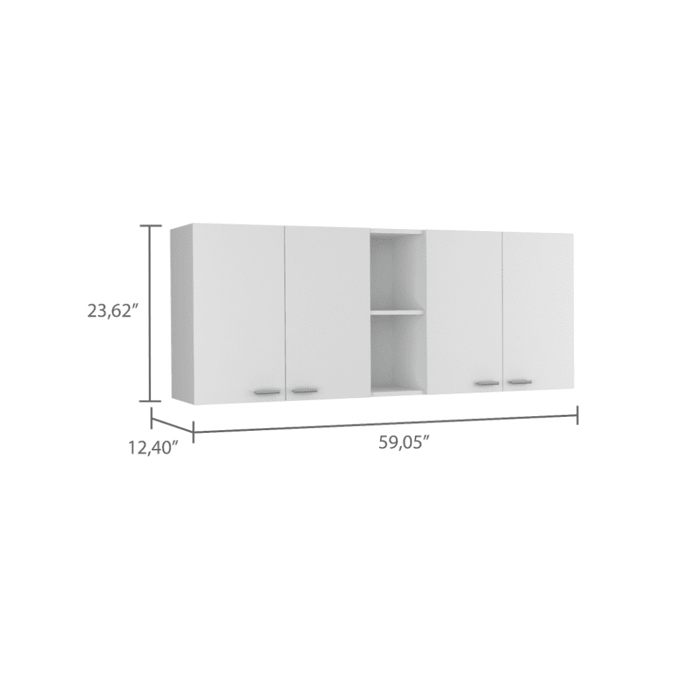 Looking for a kitchen set that will make your kitchen the envy of all your friends and family? Here's the Austin Kitchen Set! This stylish set is designed with an exclusive white-walnut manufactured wood finish, making it a truly unique addition to any home. This set is ideal for anyone who loves to entertain or wants to make a statement in their kitchen. Whether you're looking for a place to enjoy a meal with your family or want to host an intimate gathering, this set will give you everything you need and more. Don't miss out on this must-have kitchen set!This stylish island is perfect for any kitchen, with a large top surface (40,5 "W X 27,5 "D) perfect for meal prep or entertaining. The white-walnut finish is easy to care for and will make your kitchen look its best. The modern style impresses your guests, and the three spacious lower shelves provide plenty of storage space.The Winslow 150" Wall Cabinet is simply exquisite. It's practical, fits easily on any wall, and is easy to assemble. It features two double-door cabinets - one with an internal shelf and the other including two excellent racks, ideal for your dishes or glasses. And in the middle of the cabinet is an open shelf that adds a unique touch (8,81"W X 10,90"H). Such a perfect way to add organization and elegance to your home.Dimensions:Furniture 1, Brooklyn Kitchen IslandWidth: 40,5'Height: 35,4'Depth: 27,5'Furniture 2, Winslow 150" Wall CabinetWidth: 59,05'Height: 23,62'Depth: 14,40'