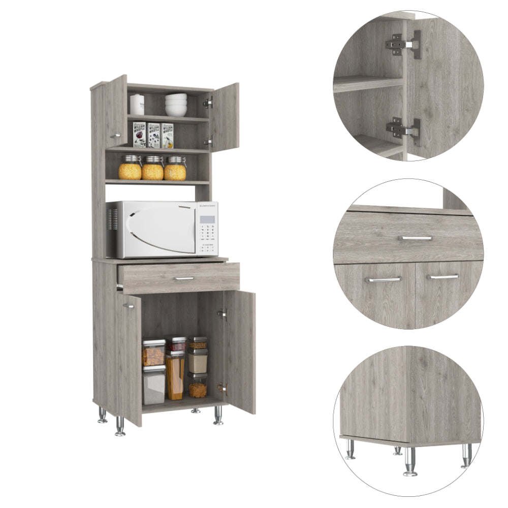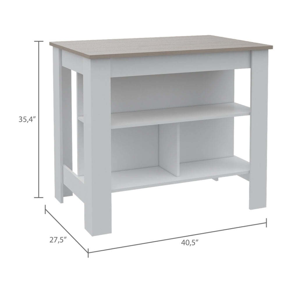 The Calgary Kitchen Set is perfect for those who want a stylish and sophisticated kitchen that will impress guests. This gorgeous set is designed with exclusive and resistant manufactured wood in a white-light grey finish, giving it a modern and sleek look that will complement any home decor. With its clean lines and minimalist design, this set is ideal for those who appreciate contemporary design. This incredible Brooklyn antibacterial kitchen island features a unique wide surface (40,5"W X 27,5"D) with exclusive antibacterial elements, making it the perfect prep space for your meals. It also has a unique design with three low shelves, ideal for adding extra storage. Whether you're a professional chef or a home cook, the Brooklyn Antibacterial Kitchen Island is a must-have for any kitchen.The Bay Area Pantry is a beautifully designed storage solution for any kitchen. It comes with a double-door cabinet on the top (11,5"W X 12"H), perfect for keeping all of your essentials tidy and organized. The large drawer (5,2"H X 23,2"W) is ideal for storing your kitchen utensils and gadgets, while the double-door base cabinet provides ample internal storage space. The pantry also features two external shelves, suitable for your microwave or other appliances. The Calgary Kitchen Set is also highly durable and easy to care for, making it a wise investment for your home. Take advantage of this fantastic opportunity to own the kitchen set of your dreams!Dimensions:Furniture 1, Brooklyn Antibacterial Kitchen IslandWidth: 40,5'Height: 35,4'Depth: 27,5'Furniture 2, Bay Area PantryWidth: 23,6'Height: 66,5'Depth: 13,7'