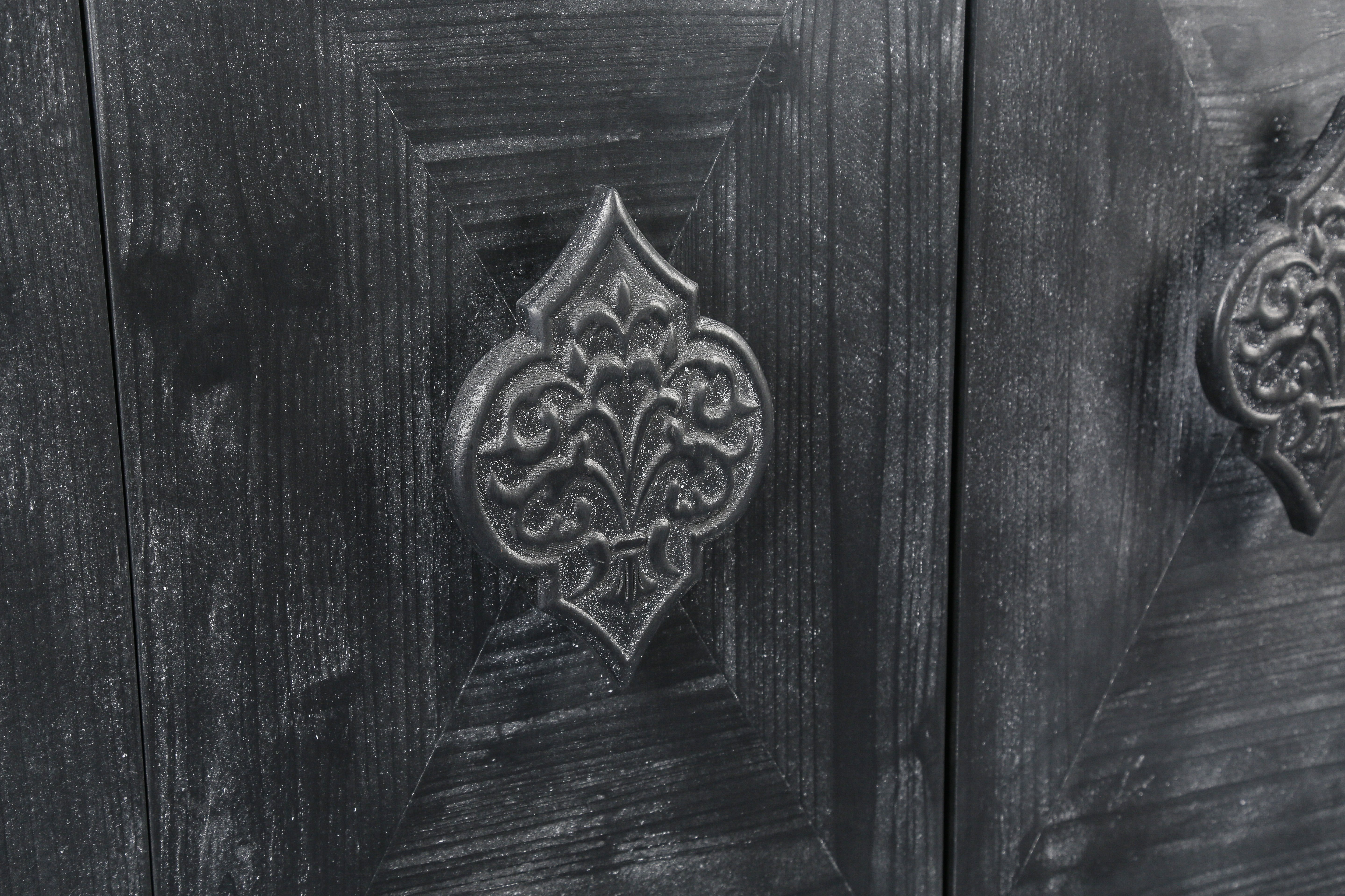 Carved Flower Door Handle, Antique Four Door Cabinet for Living Room Kitchen Hallway (Black)