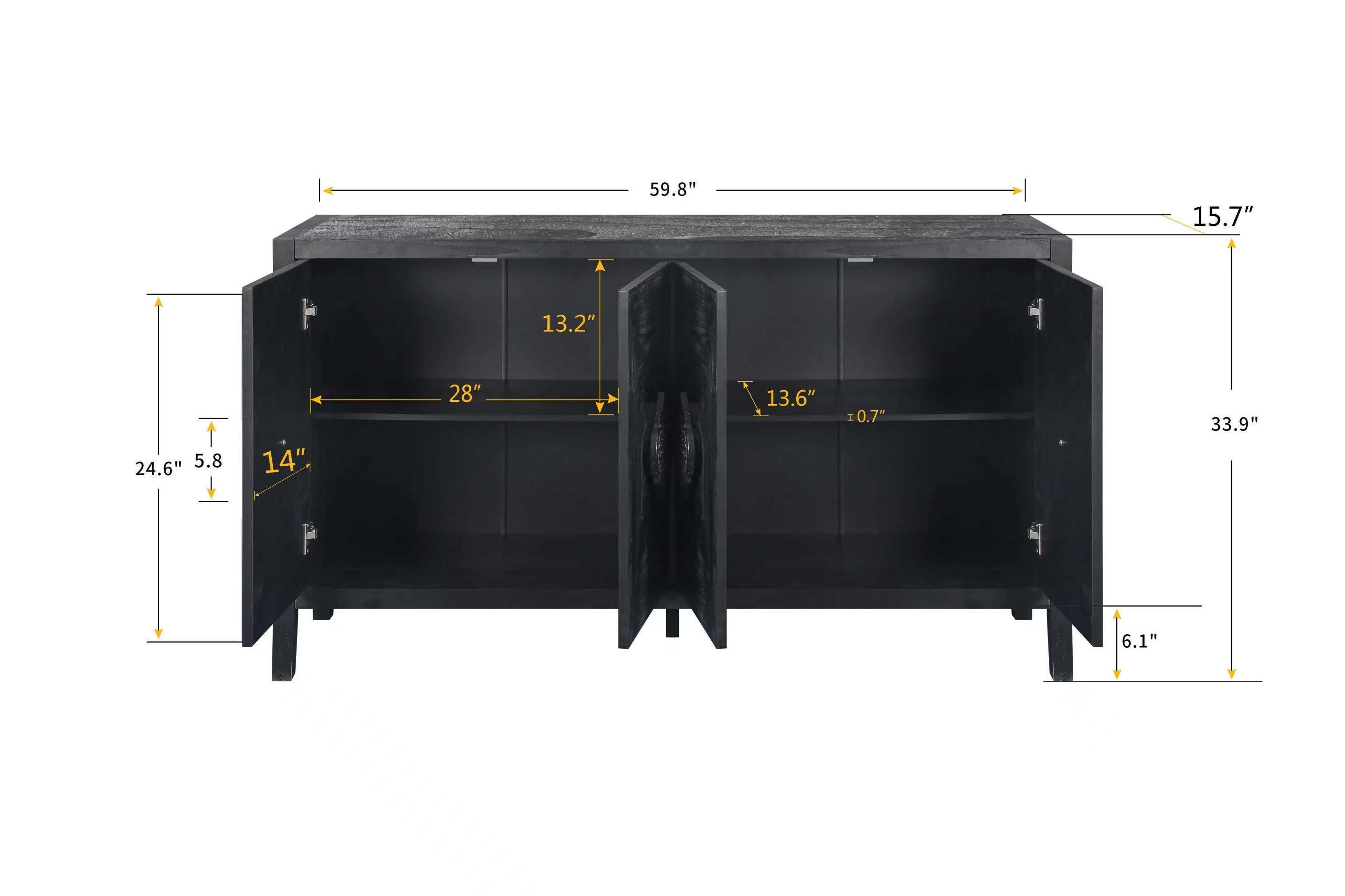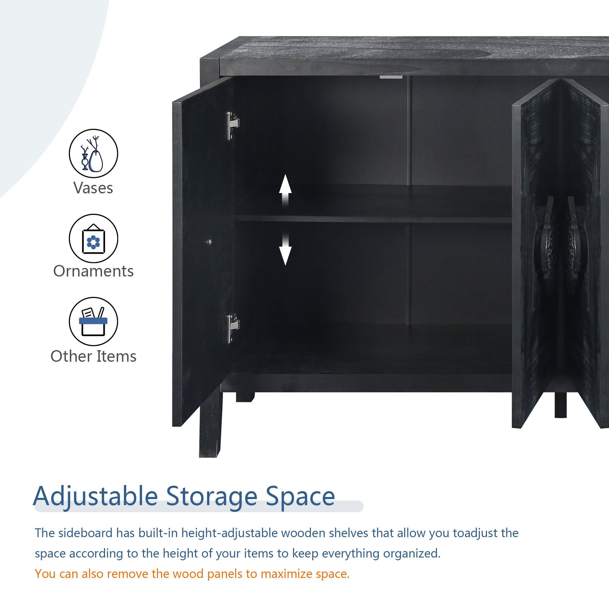 4 Doors Storage Wooden Cabinets Console Table SideboardThis door knob features a fine carving process that creates a unique large flower pattern. This design not only increases the beauty of the door handle, but also gives the furniture a classical and elegant atmosphere. Through careful carving, the door handle presents a detailed texture and three-dimensionality, making it one of the highlights of the furniture.The premium antique furniture effect makes this door handle more elegant and delicate. The antique style design incorporates traditional and modern elements, making it stand out in the whole home space. Whether it is placed in the living room, bedroom or study, such a door knob can add a unique flavor and atmosphere to the whole space.