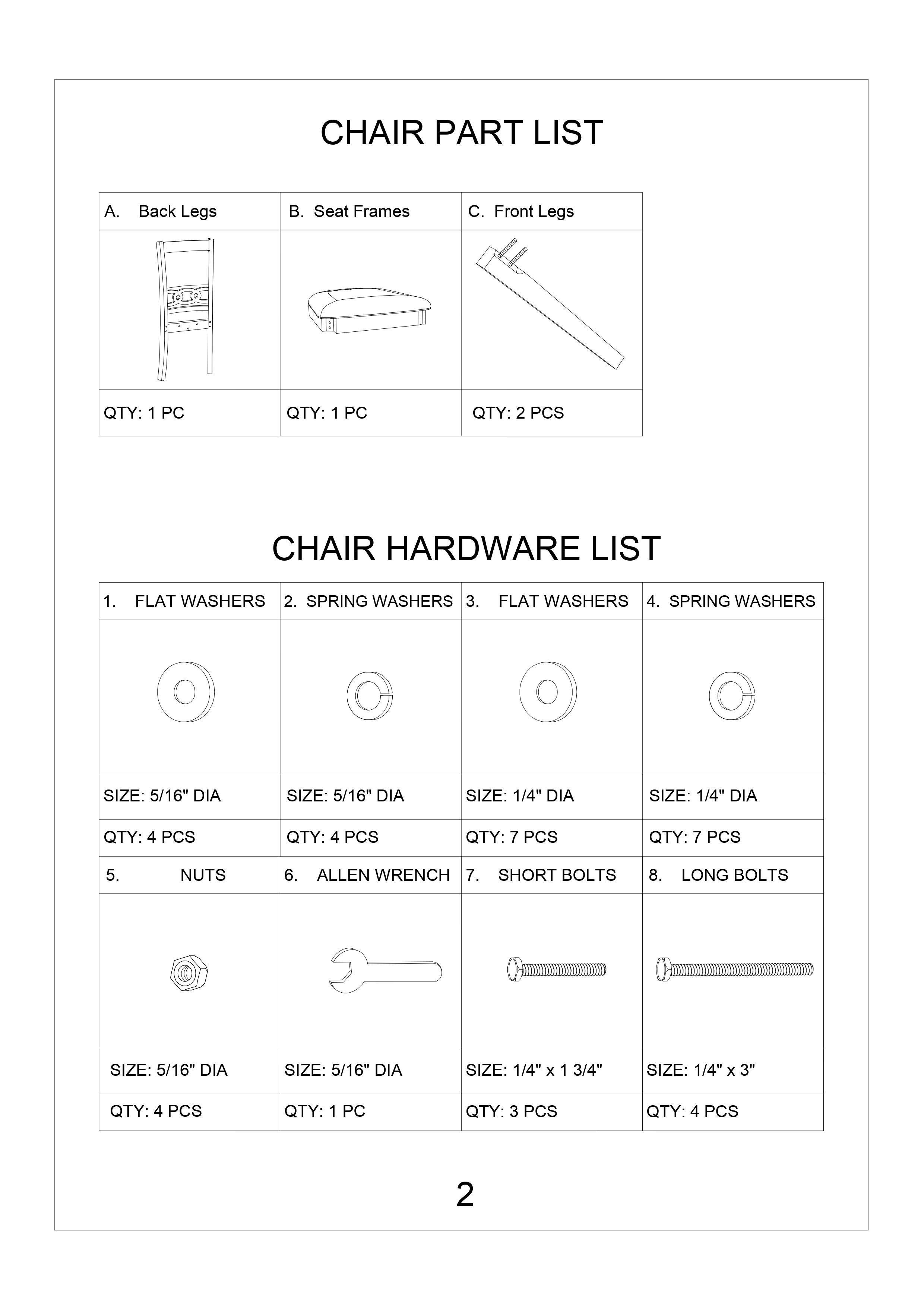 Dimensions:-2x Side Chair: 18" x 22.5" x 38"H