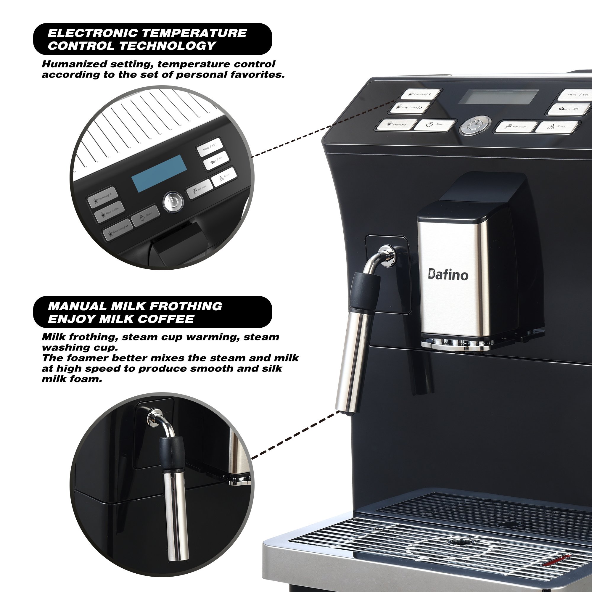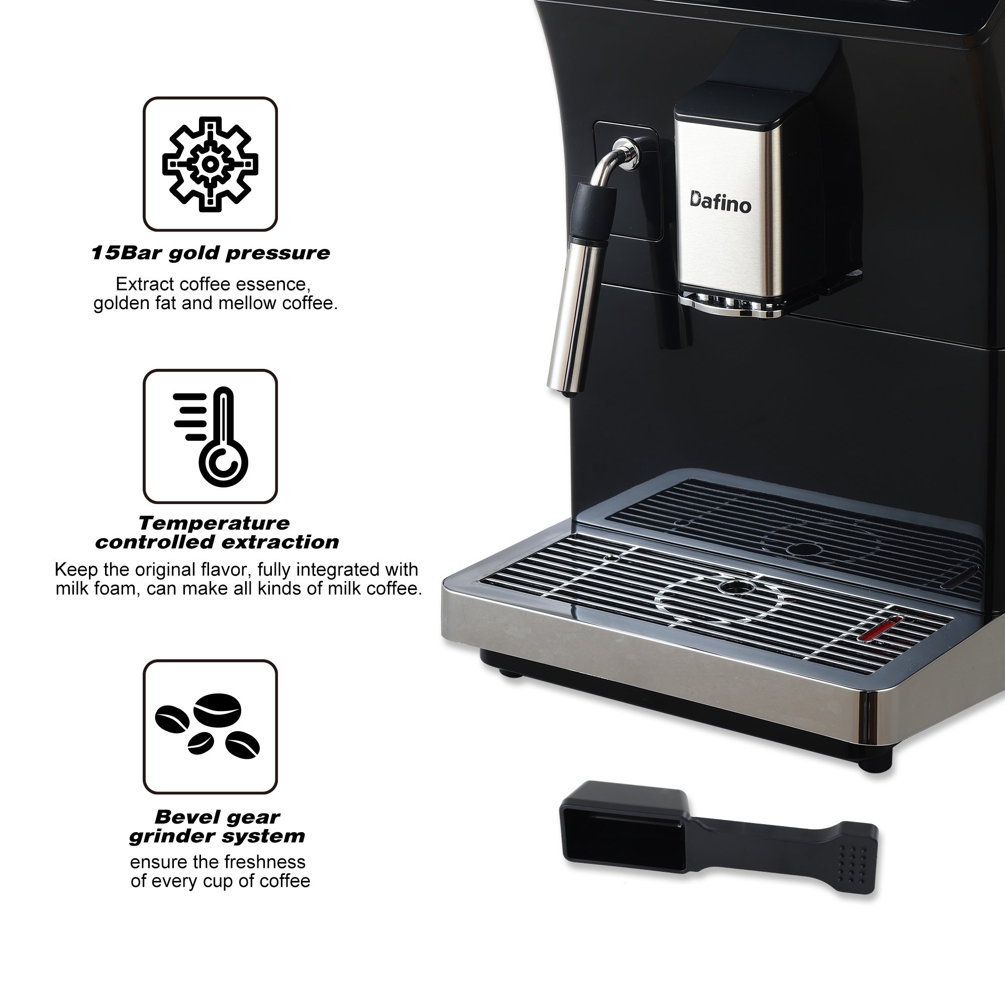 5.Intelligent Features & Customizable Settings:** With an automatic alarm for water and bean shortages, full coffee grounds tank indicator, and customizable beverage parameters, this machine is designed for your convenience. It also has a memory function to remember the number of beverages and rinses automatically when turned on and off.