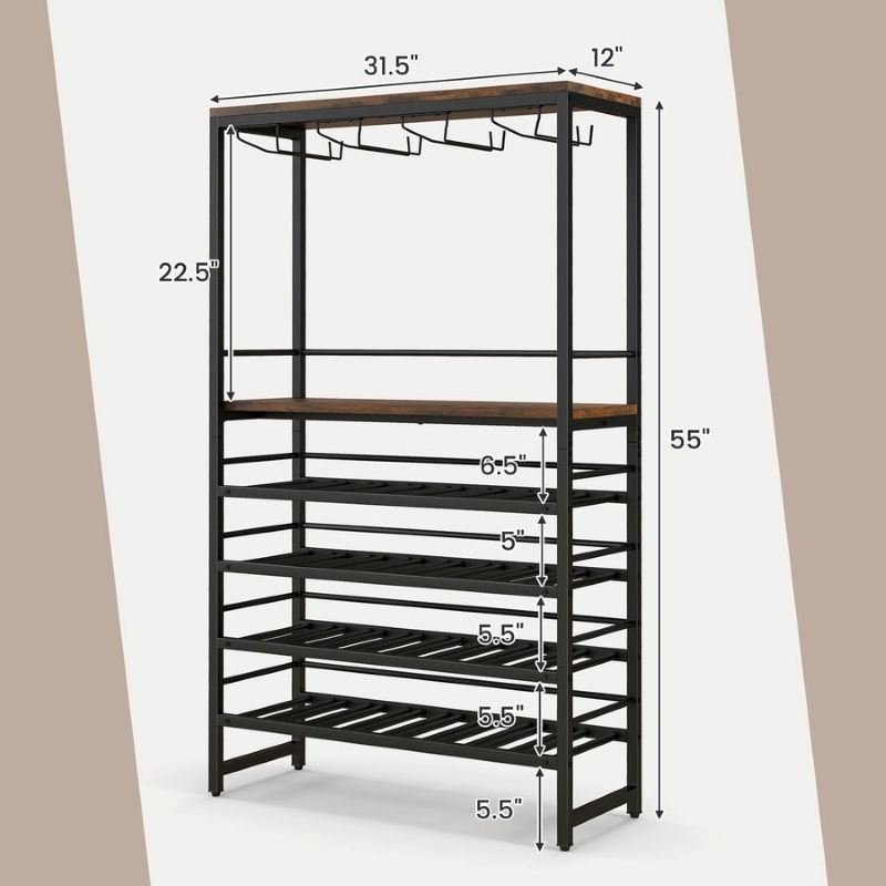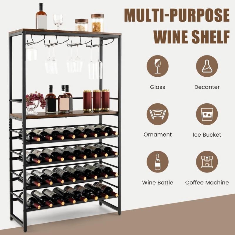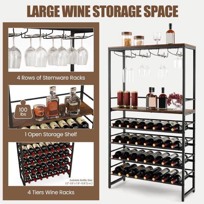 3.The robust metal frame helps the freestanding wine rack stay steady once assembled and ensures a long-lasting service life.