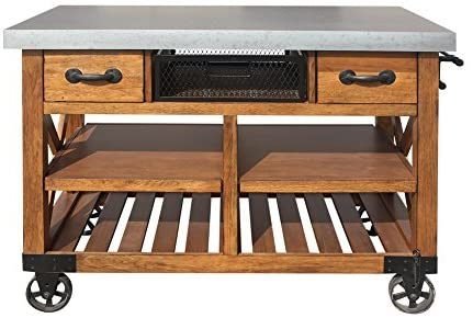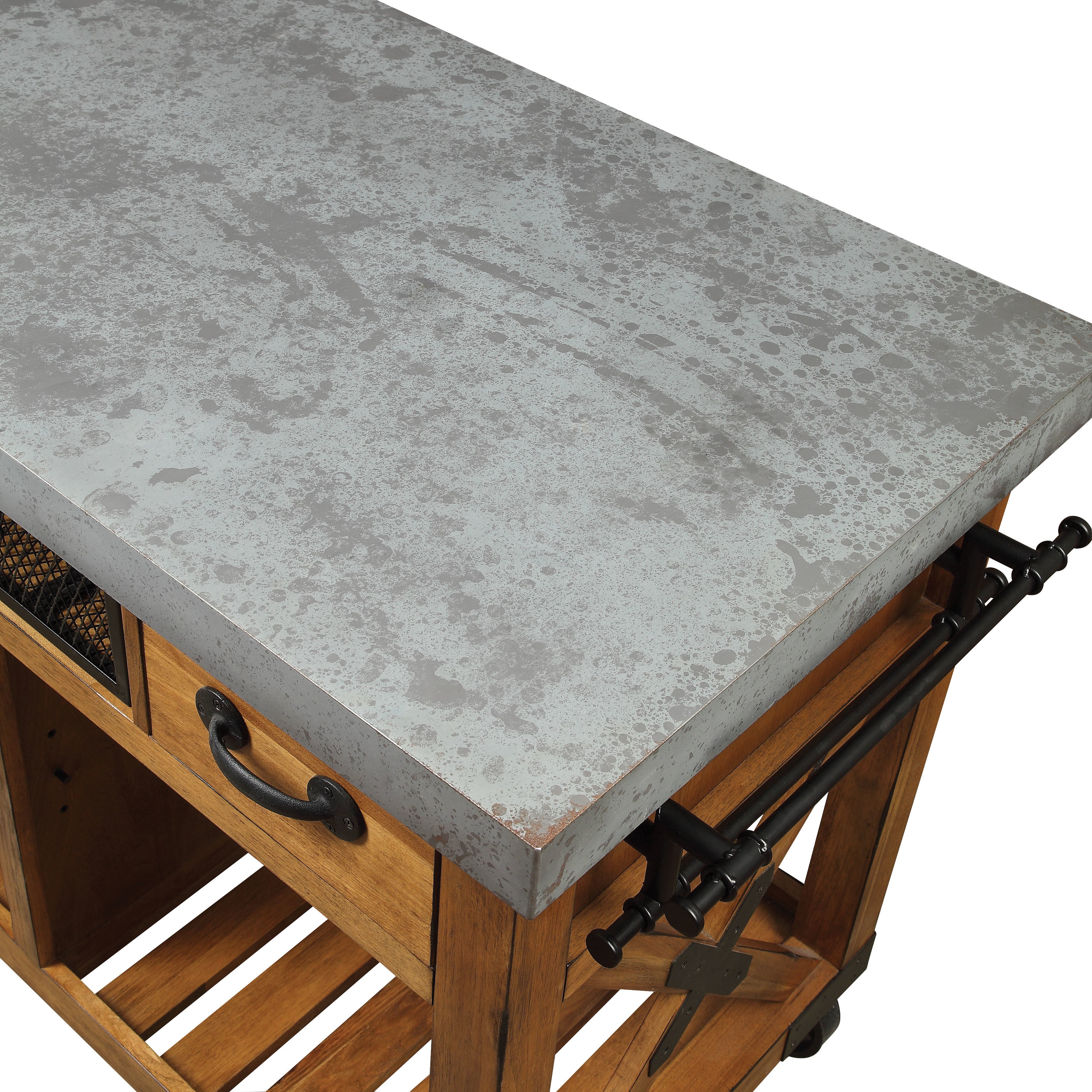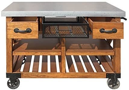 Romance : The Kailey kitchen cart with durable construction of wood and metal in a unique distress oak finish will become a stylish and function centerpiece of your home. The kitchen cart rests on casters; allowing you to move it easily. The storage space includes basket; drawers and open shelf. This kitchen cart will make a beautiful addition to your home.