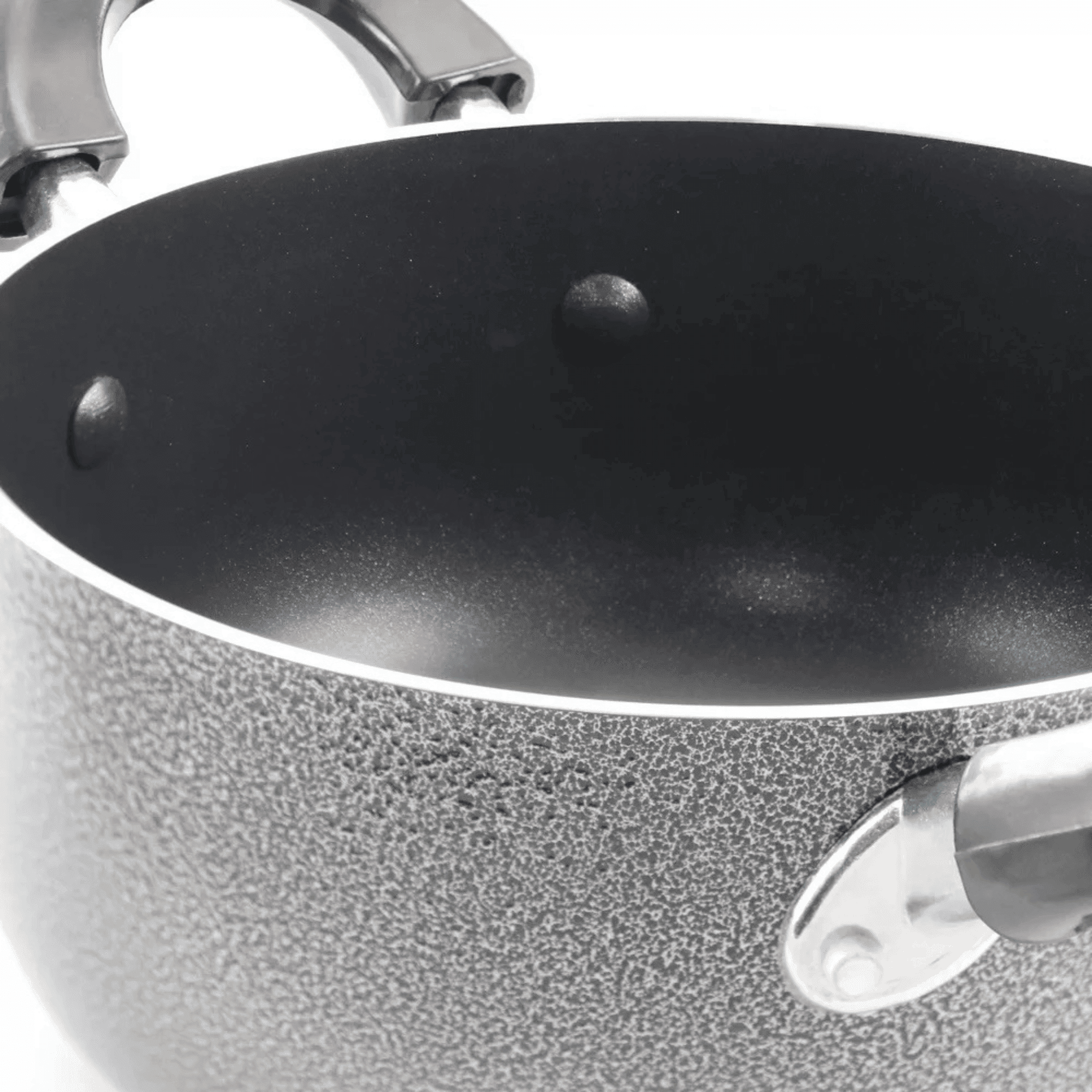 Prepare your next culinary masterpiece with the Better Chef 10-quart Dutch Oven. Crafted from ultra-heavy-gauge aluminum and featuring a non-stick coating and a heft glass lid, this set ensures easy cleaning and hassle-free cooking. Whether you're searing chicken, boiling pasta, or whipping up a home-cooked meal, this Dutch oven has you covered. The included heat-resistant tempered glass lid with its built-in steam vent allows you to monitor your food effortlessly, ensuring perfect results every time. Complete with Bakelite cool-touch handles equipped with heat protection, this Dutch oven makes cooking safe and convenient.