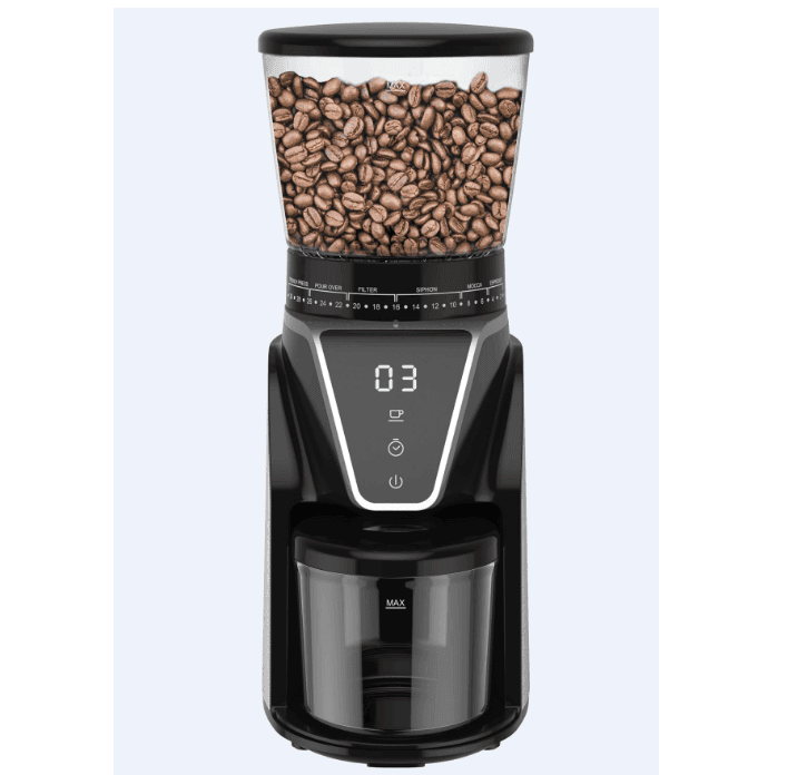 SKU: PSCG001, electric coffee grinder 31 gear regulator 275g powder grinder 100g LED display touch control taper no burr electric coffee grinder professional taper burr coffee grinder multifunctional home / commercial / kitchen grinder