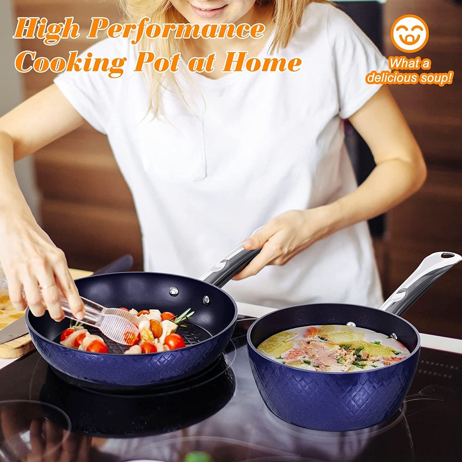 Home > Kitchen Cookware Sets Nonstick Ceramic Bule,1.2 Quart Pot Saucepan with Lid+8 inch Small Frying Pan +9.5 Hard Anodized Frying Skillet Pan
