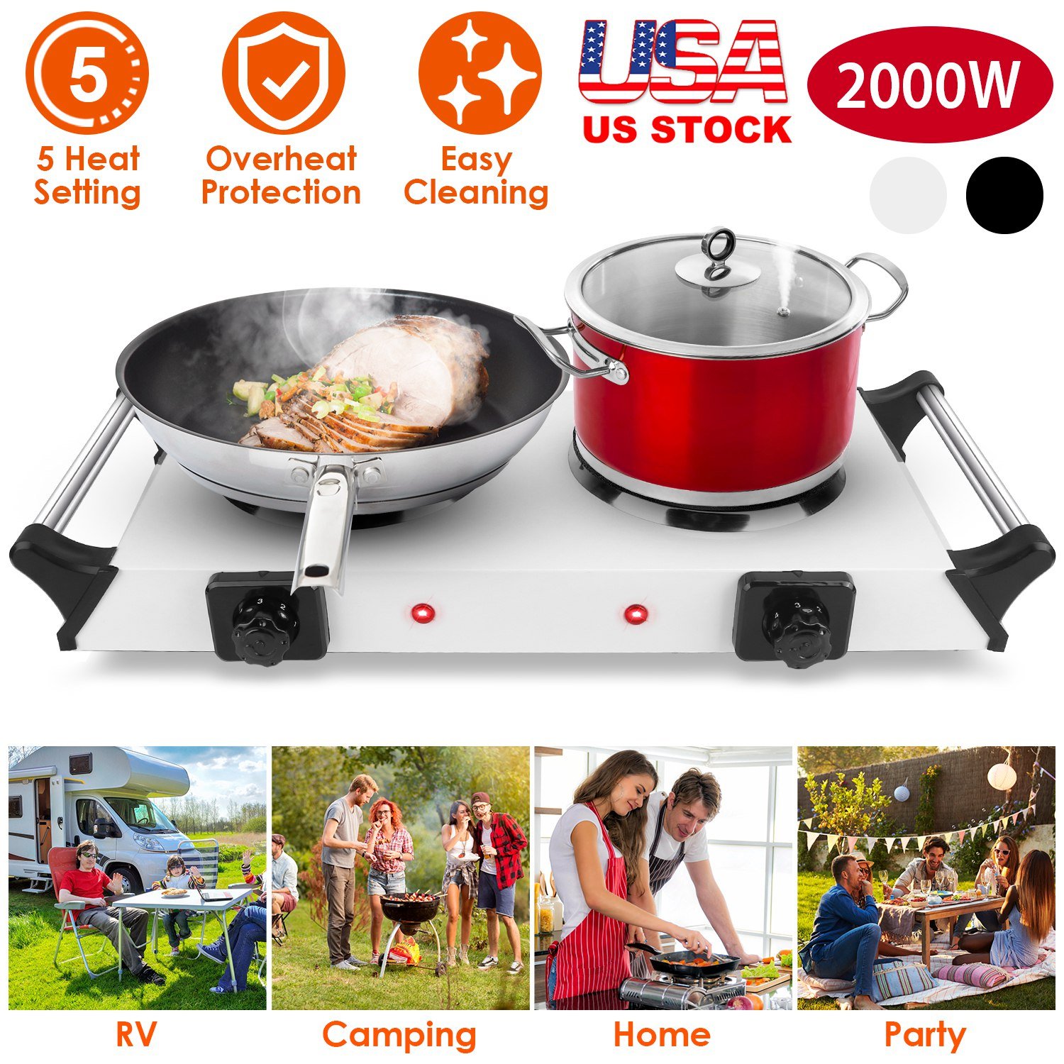 Home > 2000W Electric Dual Burner Portable Coil Heating Hot Plate Stove Countertop RV Hotplate with 5 Temperature Adjustments Portable Handles