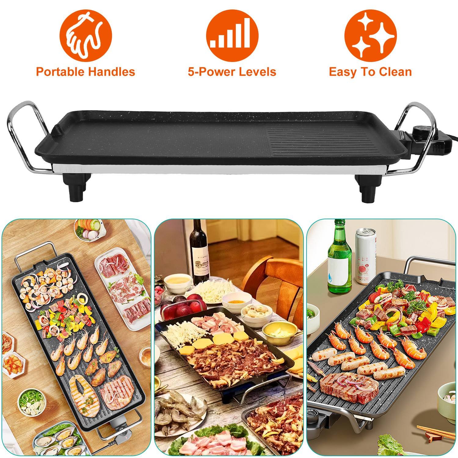 Home > 1400W Electric Barbecue Grill Hot Plate Cooking BBQ Griddle Non-Stick Table Top Grill Griddle for Indoor Outdoor Camping Picnic