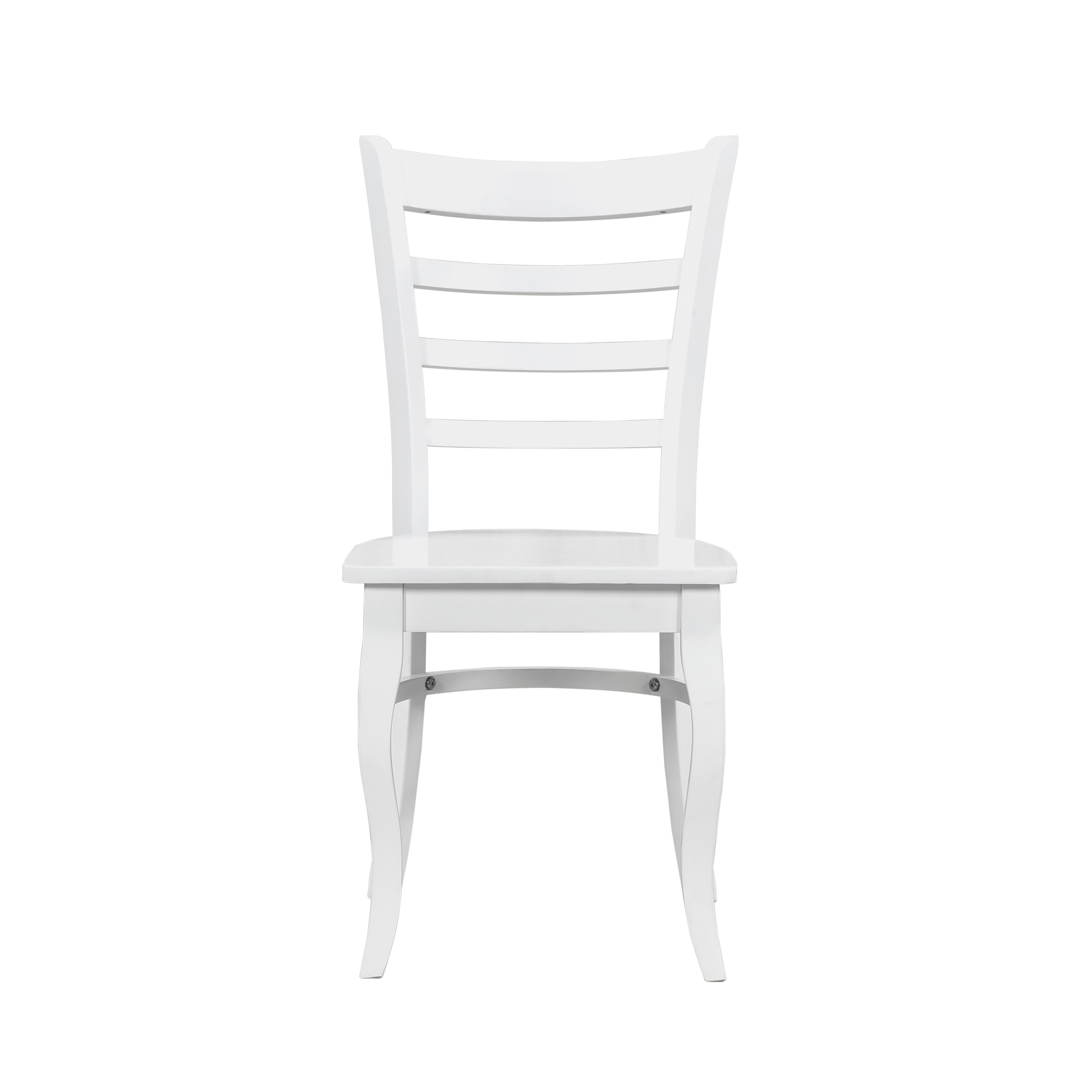 Description & DimensionsThe Bonnie Collection presents a traditional profile that will be at home anywhere from a casual country farmhouse to a suburban breakfast nook. The white finish that covers the collection creates the perfect canvas for your favorite tabletop accessories. Traditional and transitional accenting subtly lends their timeless profiles to the look of the collection, with the contoured ladder backs of the wood chairs complementing your home's decor.PRODUCT DIMENSIONS: Overall Dimension: 17" x 20" x 35"HSeat Width: 17"Seat Depth: 16.5"Seat Height: 18"Listing Includes: Set of 2 Side Chairs Only.Table: Not included.Simple Assembly Require.
